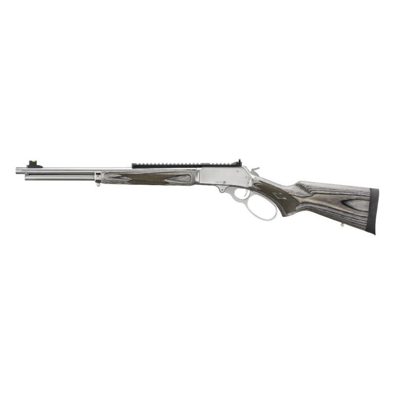 Marlin 336 SBL lever-action rifle chambered in .30-30 Winchester with a 19.1″ cold hammer-forged stainless threaded barrel, polished stainless finish and gray laminate stock.